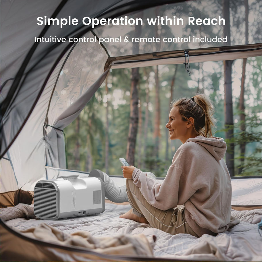 Easy Control - This stylish camping air conditioner is equipped with a remote control and touch control, allowing easy one-touch control. The body of the machine has buttons for cooling, dehumidification, fan, timing adjustment, etc. Provide you with endless coolness in the hot summer days.